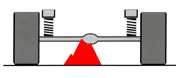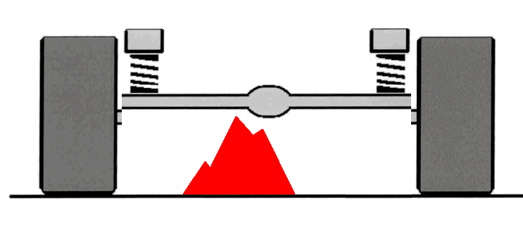 In this image, the crudely drawn rock is going to destroy the crudely drawn axle when the truck runs over it: