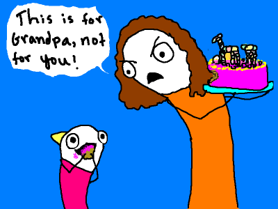 But my mom knew that it was extremely important to keep the cake away from me because she knew that if I was allowed even a tiny amount of sugar, not only would I become intensely hyperactive, but the entire scope of my existence would funnel down to the singular goal of obtaining and ingesting more sugar. My need for sugar would become so massive, that it would collapse in upon itself and create a vacuum into which even more sugar would be drawn until all the world had been stripped of sweetness.