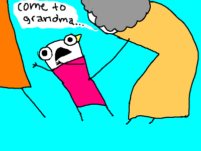 And then, right there in my grandmother's arms, I lapsed into a full-scale psychological meltdown. My collective frustrations burst forth from my tiny body like bees from a nest that had just been pelted with a rock.