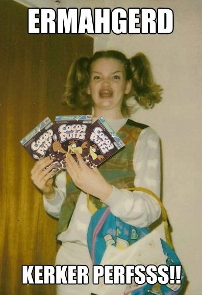 Also, am I the only one who thinks that the bird has gotten a lot more crazy-looking in recent decades? I mean, when I was a kid, he used to just be happy about having the cereal in the first place: