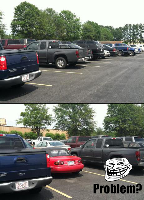 I do that at work every day ^. I get someone nearly daily saying they hate me, because they thought they saw an open spot closer to the door, but then realized I was in it, and they have to back up to get one further away from the building. I wear that troll face when they tell me about it. "Oh really? Sorry... ahahaha!"