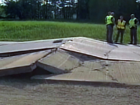 Ok i guess its called "buckled road"... happens from the heat where it just lifts off and cracks at a weak spot. The one i saw was about a foot or so tall.
