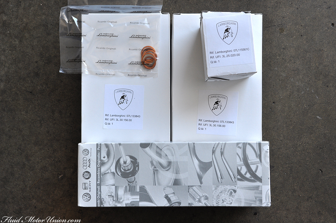 The Gallardo only requires 10-10.5 liters of full synthetic oil. Think I remember someone telling me a dealer would charge 4 or 500 for an oil/filter change. Sorry, even if I owned (afforded) a $200,000 car, I'd change the ---- myself.