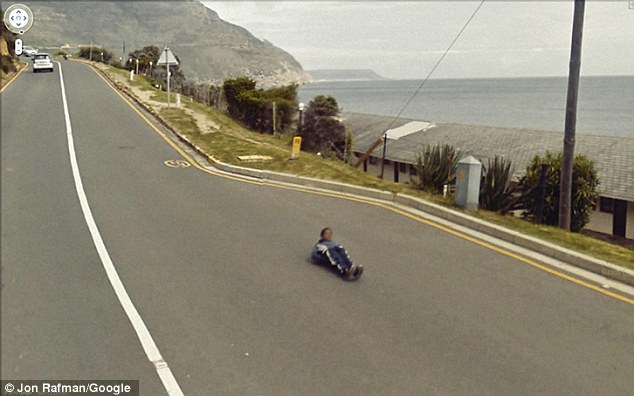 Brave: A boy skateboard on his back down Chapman's Peak Drive in Western Cape, South Africa