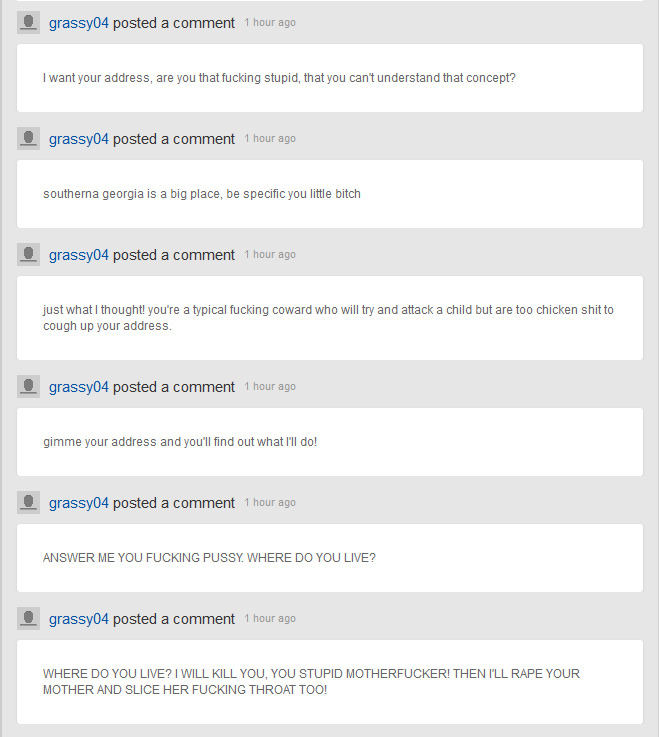 Ah, yes. I know that when I want to find out where someone lives, threatening to murder them and rape their mother is usually a helpful tactic.