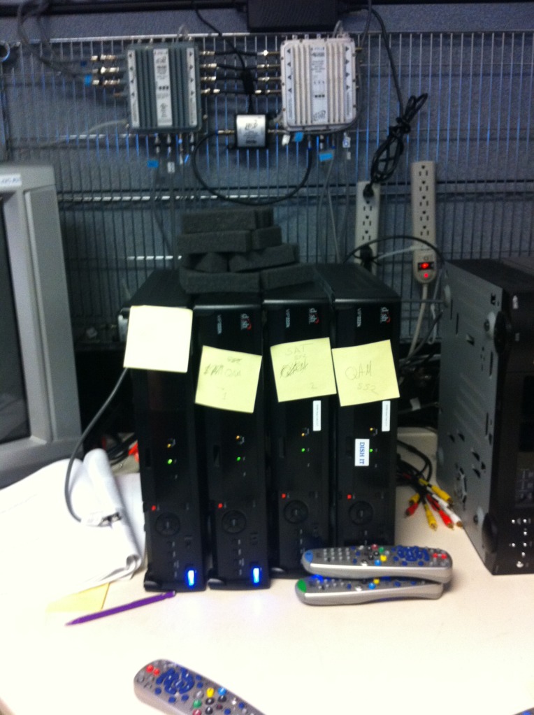 So I got a muffin from the cafe in my building when I got here. I decided I wanted to consume it with a medium warm temperature when I finally decide to consume it. But rather than walk down to the 6th floor (I'm on the 10th), I decided to warm it up using the equipment in my cube....satellite receiver boxes. Place muffin on top of running receiver(s) ----> build small insulation box out of foam ----> wait until warm. Enjoy delicious warm muffin awhile later.