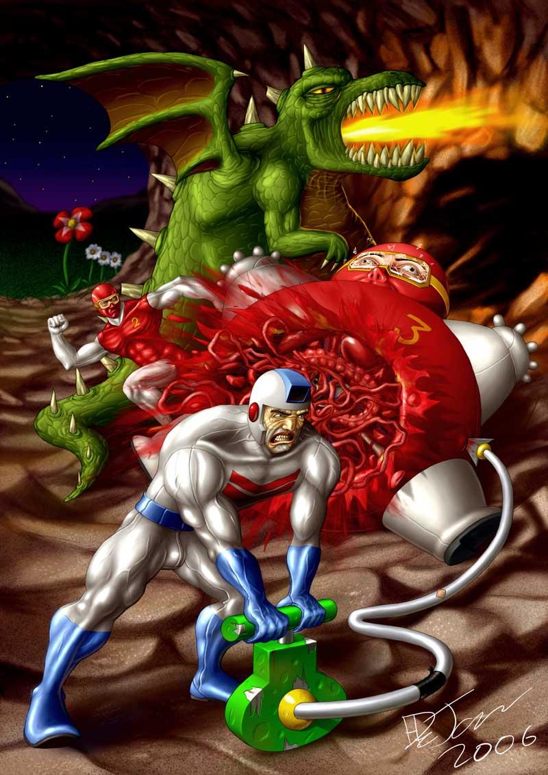 The point is that, when you really sit down and think about the characters and the so-called plot, most of the cute, adorable videogames of the 1980s portray a world filled with shocking terror and horrible violence on a scale which makes Doom (and Mortal Kombat, the other games that people got so riled up about in the '90s) seem downright pedestrian by comparison.