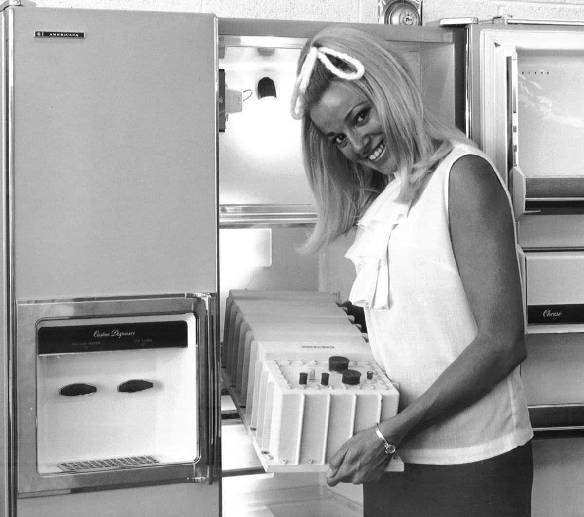 Here's one of Mandy Biondi placing an Apollo Command Module Unified S-Band Equipment Transponder into her refrigerator:
