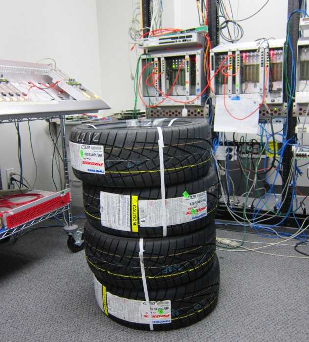 I use that area for validating software / firmware and prototyping unusual configurations in our audio routing system. So the mess of cables and hardware randomly strewn around isn't an online, mission-critical system, just a test-bench that's in a constant state of flux. Lots of homebrew crap in there as well, like a power controller that lets me automatically power-cycle the AC mains on devices under automated computer control.