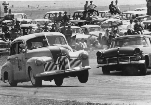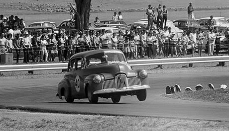 Caption: Holden 48-215 racing in Tasmania in the late 1960's