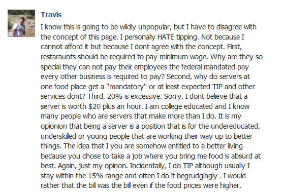 I have a feeling the guy that posted that was talking about your average TGI Friday server and not a restaurant that represents less than 1% of the business.