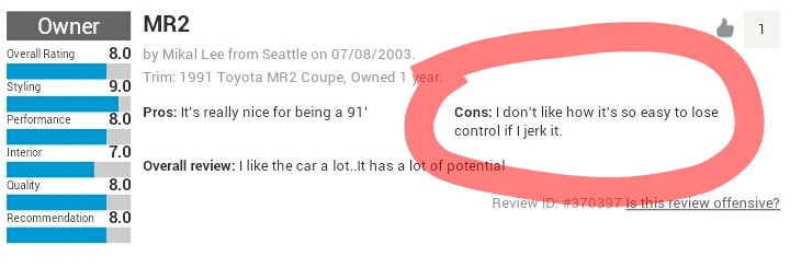 OF course it could be him doing that just when he's out with friends, and drives very carefully otherwise. Of course it could also be built and he's full of it, that I don't know either. But still.