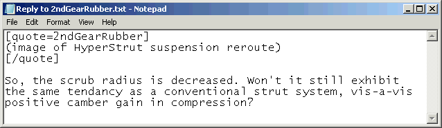 Positive camber gain is inherent in the strut design. Personally, I don't think it can be designed out. However, based on the way the steering-angle inclination is designed, and the new lower mount attachment in relation to the knuckle, I would be swaying towards saying positive camber gain would be less than a traditional Mc-strut. Again, I have nothing to prove this, just my take on the new design.