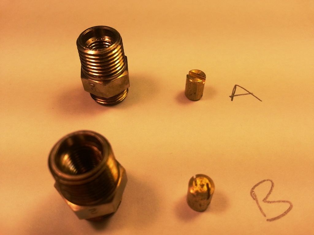 The way I received the nozzles, two were configured as "A", and the other two were as in "B".