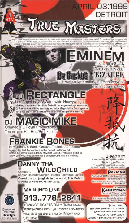 From 97-02 I promoted warehouse parties around metro detroit. Every once and a while, I would run into him and his boys partying just like everyone else back then. Sitting on a dirty warehouse floor high as **** on E and sucking down huge balloons while listening to loud as **** techno.