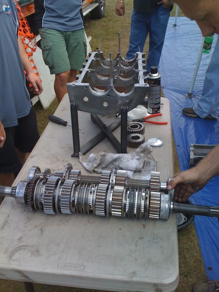 Checking the gears between runs.
