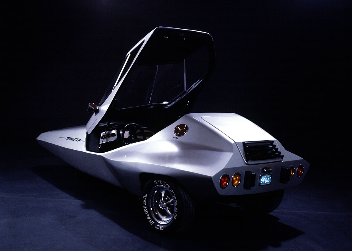 Believe it or not, he is still hawking the plans for this thing. $95 gets you 12 drawings and a 60 page book: Trimuter: A Gas or Electric Three Wheel Car Homebuilt Electric Vehicles Cars