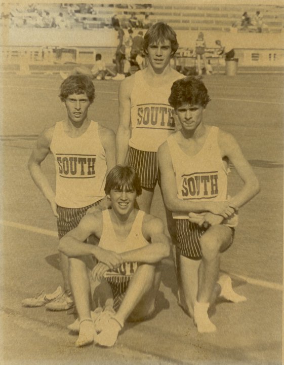 Me in High School (standing - middle). State champ, bad *** runner, sub 15:00 5Ks and tons of records and stuff, 125 lbs: