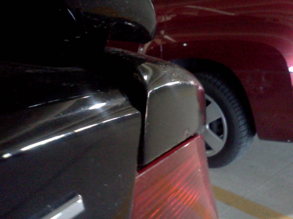 The bumper cover is mostly straight, but has a couple rips in it and the paint is fugged. The trunk was untouched in the accident but is pushed in and up at the rear window. When I popped the trunk (difficult) I could see more damage inside the trunk and there is no way in hell it's going to close again. It looks like some fairly substanital parts got bent, I'm praying to god that this POS is totaled as it's been nothing but nightmares since I bought it.