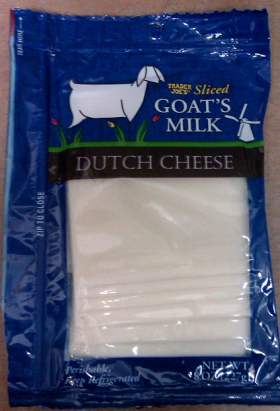 Interesting concept, so I picked up a pack. Put together a little sandwich out of the aforementioned roll, some braunschweiger, and a slice of the goat cheese. Yummy, though not at all what I was expecting. Normally, goat cheese tends to be very tangy, whereas this was much more subtle and mild. It had a nice texture, but the flavor seemed lacking. I suppose that's to be expected from a goat cheese which is young enough to be sliced and retain its shape. Normally when I think of goat cheese I visualize a chèvre that's been brined and aged until it is soft and mushy- I can't recall ever having tasted a really fresh, young goat cheese.