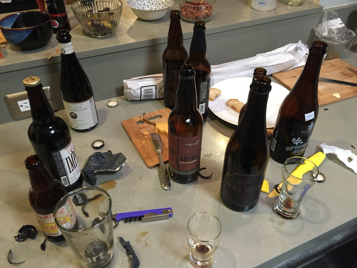 My niece and a couple of her coworkers came over tonight and wanted to "try some stout beers", so I obliged.