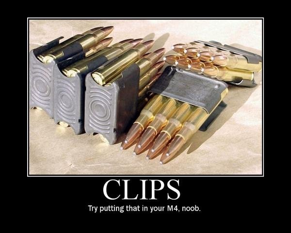 MAGAZINE, sorry. I know the difference. My SKS used "stripper clips" my AR-15 uses "magazines". BTW, what rifle are the pictured "clips" from, smartass? Hint "it's a .30 cal rifle used in WWII".