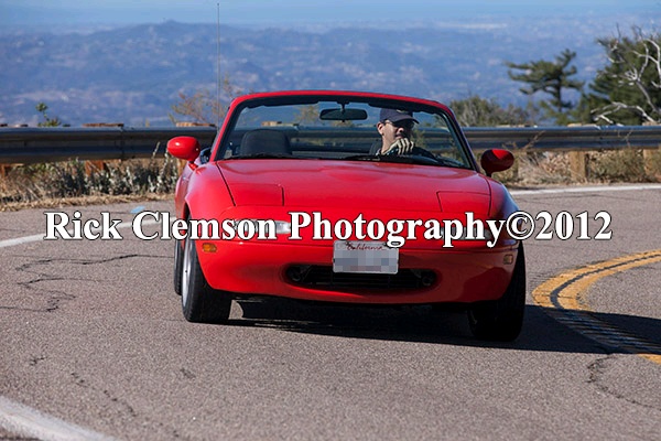 Yesterday, I went out with a dozen or so other Miatas and ran Palomar Mountain. I didn't get any video, but I *did* remember that about halfway up, we passed a guy camped out in one of the turns snapping photos of us, with a big sign advertising himself. A bit of googling and I found the pictures.