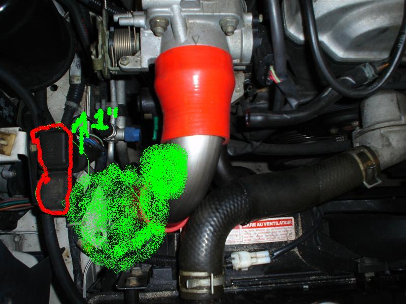 Also, mocked up and marked for the nipple for that 1" hose that comes from right under the TB and has to go to the IC piping as well...