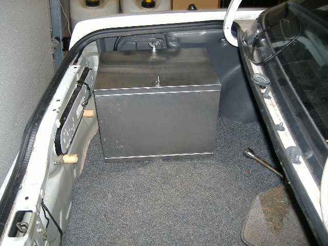 ok so yesterday i attempted mount a battery box in the trunk of my s13, (almost necessary when running fmic). so i got this nhra approved box that has 2 long *** threaded rods that need to bolt in from under the car. So of course afterwards i find out there's like 1/4" between the fuel tank and trunk.