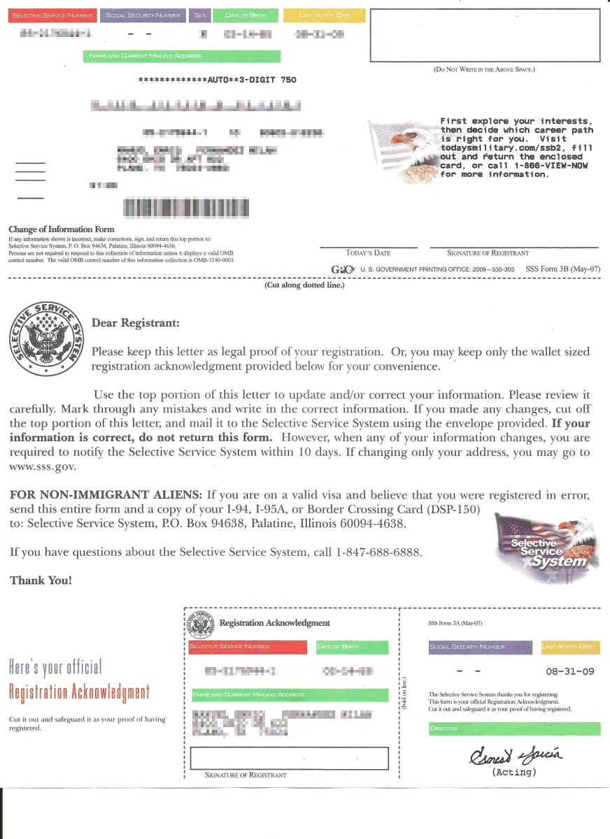 "If you are a man ages 18 through 25 and living in the U.S., then you must register with Selective Service. It’s the law. You can register at any U.S. Post Office and do not need a social security number. When you do obtain a social security number, let Selective Service know."