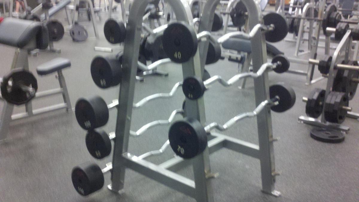 OK to be fair, he was using a 45 lb olympic bar with (I wasn't staring so this is a guess) at least a 25 lb weight on each side.