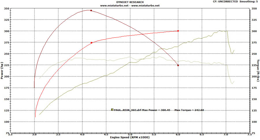 2. "just over 300hp" + "300tq@6000rpm" = no (300tq@6k=347hp)