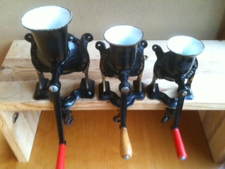 Right now I'm using this grinder but it's awkward to use because you have to hold it down with one hand while turning the crank with the other hand. Plus the hopper fill hole is annoying small and I usually end up spilling some beans.