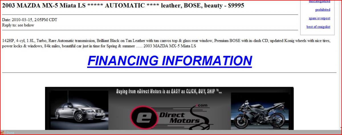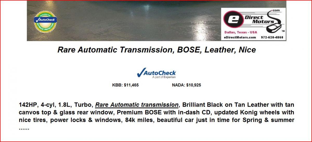 Allright the dumb *** dealer with a turbo miata, to view the full fail click here. 2003 MAZDA MX-5 Miata LS ***** AUTOMATIC **** leather, BOSE, beauty