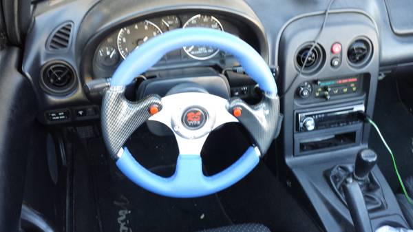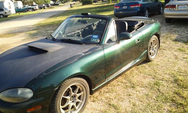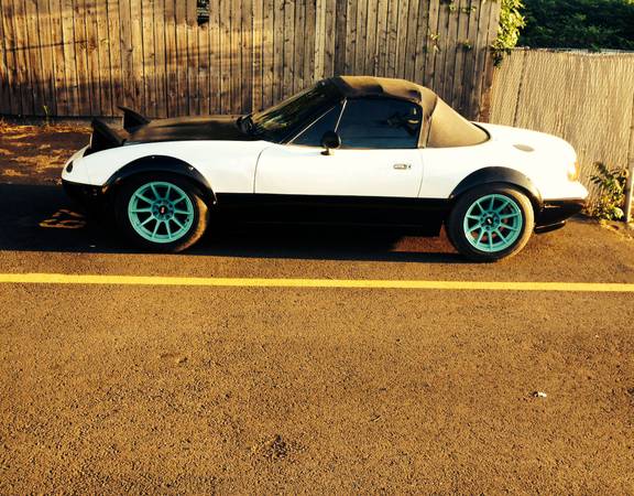 I have a highly sought after 99 Miata Miata 5spd 1.8 BP with VICS that I'm thinking about selling for the right price....has about 3k in mods! The interior, Heat and a/c has been gutted from the car...no radio at the moment but I have some 8" door speakers I can throw in. The power steering has been left in cause its so much fun with it in. Has a Torsen limited slip diff. 4:30 rear gears. Synthetic tranny and rear diff oil(red line) and water wetter in the radiator. Runs and drives....does not overheat but does burn some oil..(needs valve seals). Has new top,new rear wheel bearings, new fuel pump and filter, new coil pack ,new ngk plugs and wires, new thermostat. Car is on 15x6.5 konig eco1's lightweight wheels 10lbs and falken ziex tires and locking lug nuts. Has drilled and slotted brake rotors and ceramic pads, Kyb AGX adjustable shocks, Sprint springs, racing beat end links, flying miata sway bars, adjustable timing wheel set at 14°, custom Intake and egr delete. Raceland header, metallic core high flow cat converter, 2.5 cat back...very loud.....has a ralco rz short shifter and 3" extention. Nrg air diversion panel and Nrg steering wheel. Driver seat has a foamectemy done so it feels like a real racing seat..also have a wideband o2 sensor LC1 and frame rails..poly motor mounts..I'm sure there's a lot more ..car weight sub 2000lbs....pretty quick high 14's in the quarter in the right conditions....and will get sideways very easily but very contollable .....these cars love turbos and V8's ....has some clear coat peeling off ....some scratches and dings...inspection and registrations out of date but will pass....starts right up....drifted in it Today!...... $2000 obo"