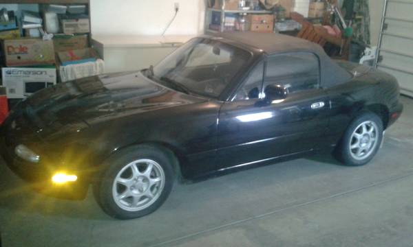 Alright guys I'm gonna be selling my 1995 mazda miata not an m edition. She's a great, reliable, fun ride with a lot of good aftermarket accessories on her. Wrapped intake (?), aftermarket spectre air filter(lifetime warranty) Racing radiator 4 core (you will never overheat in Arizona weather), New 12 blade slim cooling fans with aluminum shroud. Stage 2 clutch (I seriously hate the "stage X clutch" moniker, it says nothing), short shifter, new rubber throughout New master cylinder and clutch slave cylinder both with lifetime warranty Aftermarket steering wheel(stock with good airbag comes with the car) Currently sitting on aftermarket wheels, will come with the original Mazda rims unless you put up an extra $200 which you'll have 8 rims 4 tires with warranty, the other with no warranty. HID bulbs with angel headlights. Only 3 months old.Roll Style bar, also comes with the stock strut tower bar. LED fog lights. Anti theft kill chip (?) (greatly reduced insurance cost which is already low) Aftermarket sound system that's really awesome for a small car like the miata, 6 speakers... two 6" infinity speakers, and two kicker 4" speakers per head rest, making a great audio experience top up or down. The speakers have been dynamated, and have I have 2 year warranties on everything from bestbuy. The soft top is probably the only thing in any kind of bad shape... it has been sown along the window as the zipper was broken, it is weather sealed so no water can get in... to have the top redone you're looking around 350$+ depending on materials you choose and if you want a glass window. The interior is clean, donut tire is in good shape, basically everything but the soft top and very minor paint fade between the windshield and top as well as the rear panel between the break lights is perfect due to Arizona weather averages 27/30 in town depending on driving and up to 40 mpgs on freeway Asking $6,000 obo without aftermarket wheels $6,200 obo with.