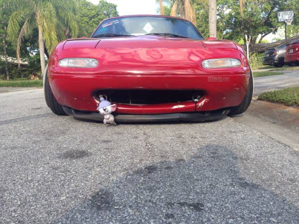 Hello. Have you ever wondered what kind of fun you could have in a Miata with over 250hp? It's a blast believe me. How do you know if it doesn't run? This is a 10th Anniversary Model which comes with the 6 speed transmission, Bilstein's, Torsen limited slip differential, fancy interior, strut tower brace, premium sound and a hard top.