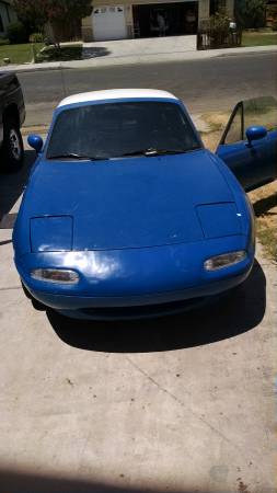 Has body damage on the side and transmission is shot. Passed smog this year and is tagged til next. The Miata is a convertible that comes with a hard top. 71,000 miles asking 1000 or best offer totally willing to work with price.