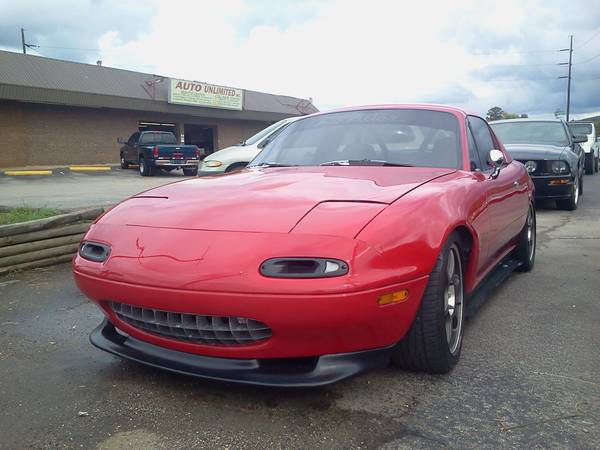 I HAVE A 95 MIATA WITH HARDTOP.I HAVE A TON OF MONEY IN THIS CAR.IT HAS ALOT OF RARE PARTS AND MODS.PEOPLE THAT KNOW MIATA WILL NOTICE.I LOVE THE CAR.I JUST GOT ANOTHER CAR THAT I TOOK UP PAYMENTS ON.THE CAR HAS NEW PAINT,BOSS FROG DOUBLE HOOP ROLL BAR.A GOOD SOUND SYSTEM,AFTER MARKET HANDLING SYSTEM.I MEAN EVERTHING 949 END LINKS,RACING BEAT SWAYS.CAR HAS BEEN LOWERED.AFTERMARKET WHEELS.SEATS HAVE RECOVERED WITH EXTRA PADDING.NOT A QUICK OR CHEAP JOB.CAR IS SUPERCHARGED.CAR IS QUICK.IT IS READY FOR THE TRACK.I HAVE NOT TRACKED IT BUT IT HAS EVERYTHING NEEDED.I KNOW I AM LEAVING ALOT OUT.THIS IS NOT AN AVERAGE MIATA.IT TOOK ALOT OF TIME AND MONEY TO GET IT WHERE IT IS.I HAVE IT LISTED IN TUSCALOOSA AS WELL.CALL OR TEXT WITH QUESTIONS.THANKS, BILLY