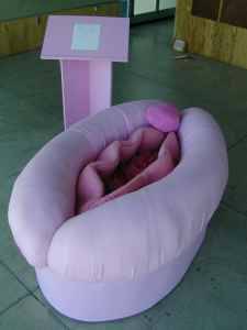 For Sale - beautiful pink "vagina couch" that I made in art school and no longer have space for. The couch is large: measures 5' 3" long, 3' 3" wide at the middle, and stands 2' 3" tall (and is heavy like a couch). The pics are from my portfolio and are several years old; as a result, the couch has some scuffmarks and stains, but otherwise is in excellent shape. A professional upholsterer helped me build the couch, so it is also functional and durable as a piece of furniture. You haul. I am asking for $600 and a loving home! Call or text Michelle at