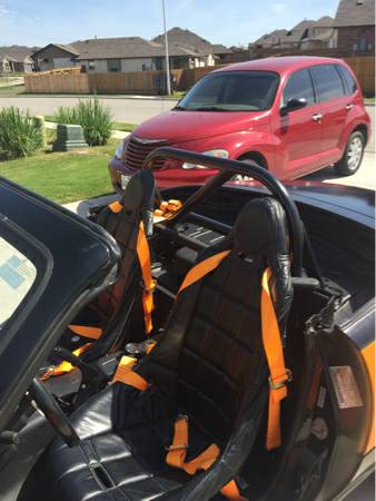 Door glass, soft top, carpet airbags, trim molding, AC and stereo have all been removed to save weight. This car is FAST and handles like a go kart . Fun to drive and race. Title in hand.