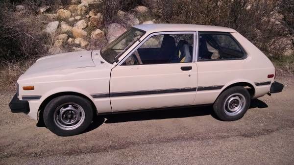 Unmolested 1982 Toyota Starlet KP61, two door rear wheel drive, four link rear suspension, rack and pinion steering, five speed transmission. Factory cold air conditioning. Last year to have a carburetor.