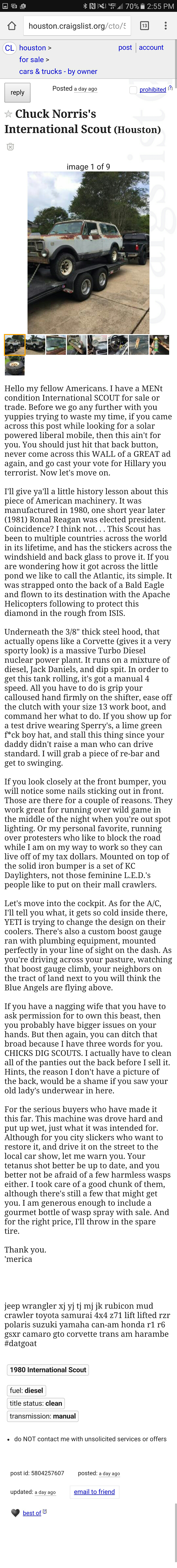 Speaking of the IRS, did you see the asking price? For less than your tax return, you could have it all. Controlled countersteering. Automatic windows. A sun roof. General and specific awesomeness. No, this isn't a new-age yuppy's BMW with traction control, driven by some fucktard who doesn't know how to use blinkers and either needs to prove to his daddy that his law degree was worth it or prove to his drug buyers that he's a legit dealer. This car is
