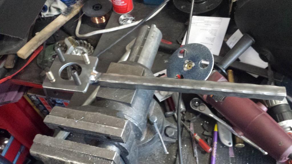 the first thing i did was put it in 5th, ebrake on, wheels chocked, and tried to break it loose. i hate doing it that way as the drive line acts like one big spring, you have to preload the **** out of it, until bang! it wouldnt bang for me. the thing was fuking tight, it took all my body weight on a 3ft breaker bar. maybe if i had a decent impact gun and wanted to break open the A/C system to remove the condenser core that is in the way of said impact gun. i made the tool in about 45 minutes for free.