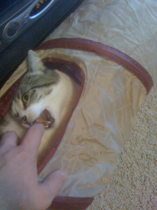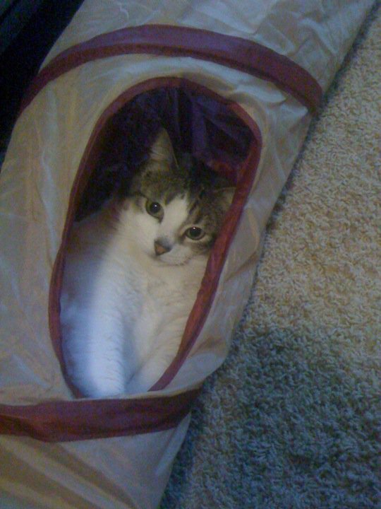 stray kitties make the best pets because they are fun and I think the appreciate you for taking them in. I was taking care of nine, but it looks like they are all gone but one. I may need to capture her and take her home...but there's a problem. I think this stray is my cat's mom because they have the same fur feel and similar facial structures. My cat's name is "Polly", this cat's name is "Polly-mamma". That could be confusing.