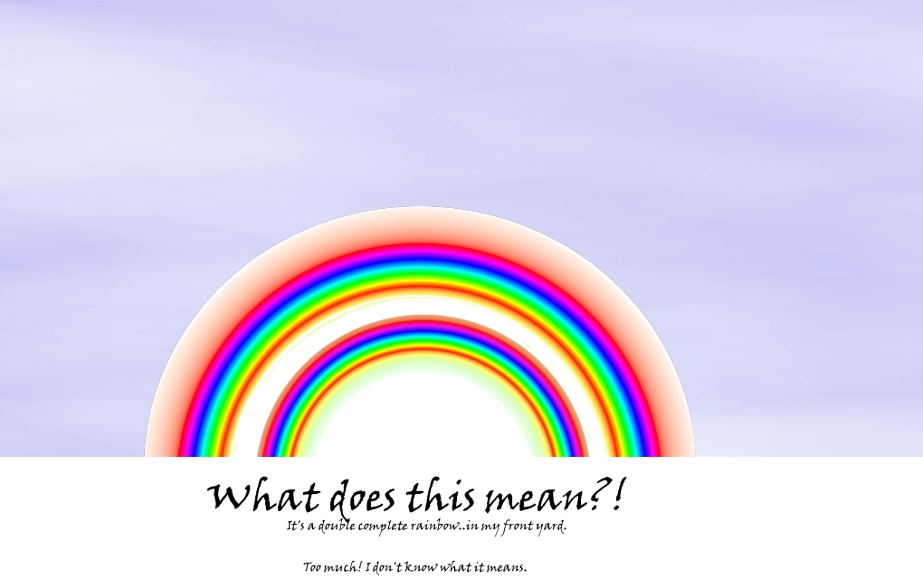 That woman's ranbow video- What a goddamn ******* retard! I get a kick out of the opening text stating how rainbows close to the ground are "new" and haven't really been seen 20 years ago. Yeah... I never noticed that **** as a kid