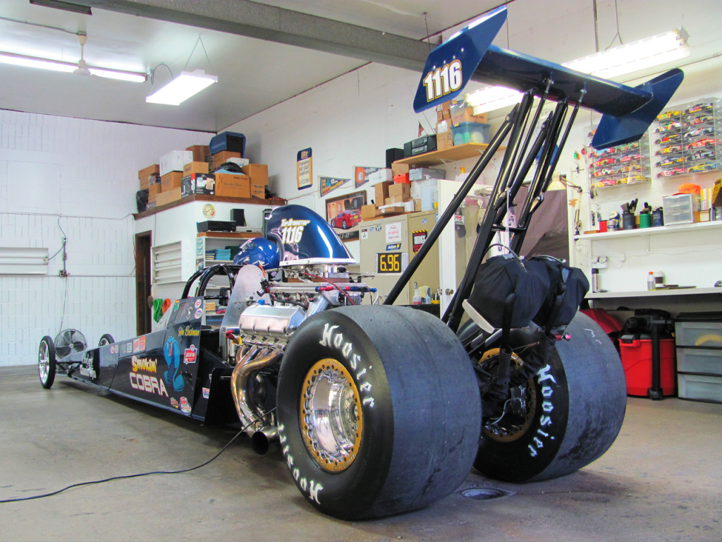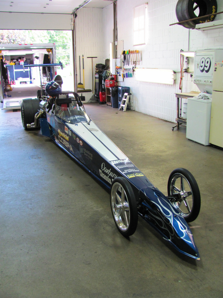 The welding shop owner has a dragster he races on his time off. I seen it when we did the foundation for his new house (complete with a concrete burn out strip right out of the garage), but this was the closest I got to it before.