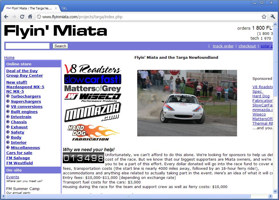 When they started their donation drive, I had some spare cash and gave it to them happily. A lot of folks in my local Miata club also donated and got the club name put on the side of the car. Again, this was months ago when they first started soliciting donations. Before they decided to reset their donation tach.