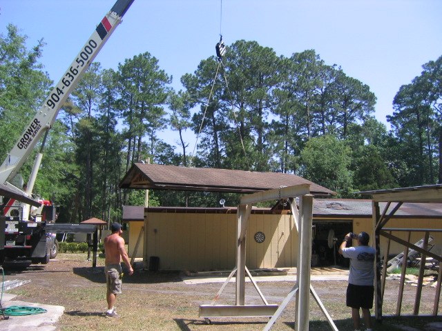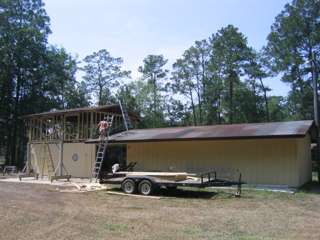 Yes, we plonked the same roof right back on top of the new stub walls... Made some partial "storage mezzanines" to bolster the strength of the long walls, and reconnected the same roll door tracks to them. The only limitation was that you can't have the door open when a car is up in the air, but it otherwise works great. Took a day and a couple buddies (and a crane) to do the whole thing.