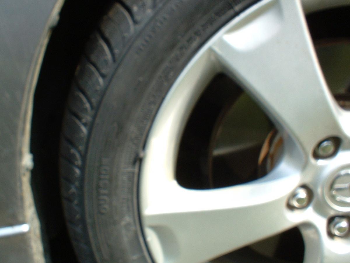They took damn near and hour to do the job. Stratched the fuckout of my rims and well look at this picture. The ************* somehow seem to have cut the bead of my tire when doing the instalation. I didnt notice this until i got home and after waiting abit for the tires to cool went out to check the air pressure.